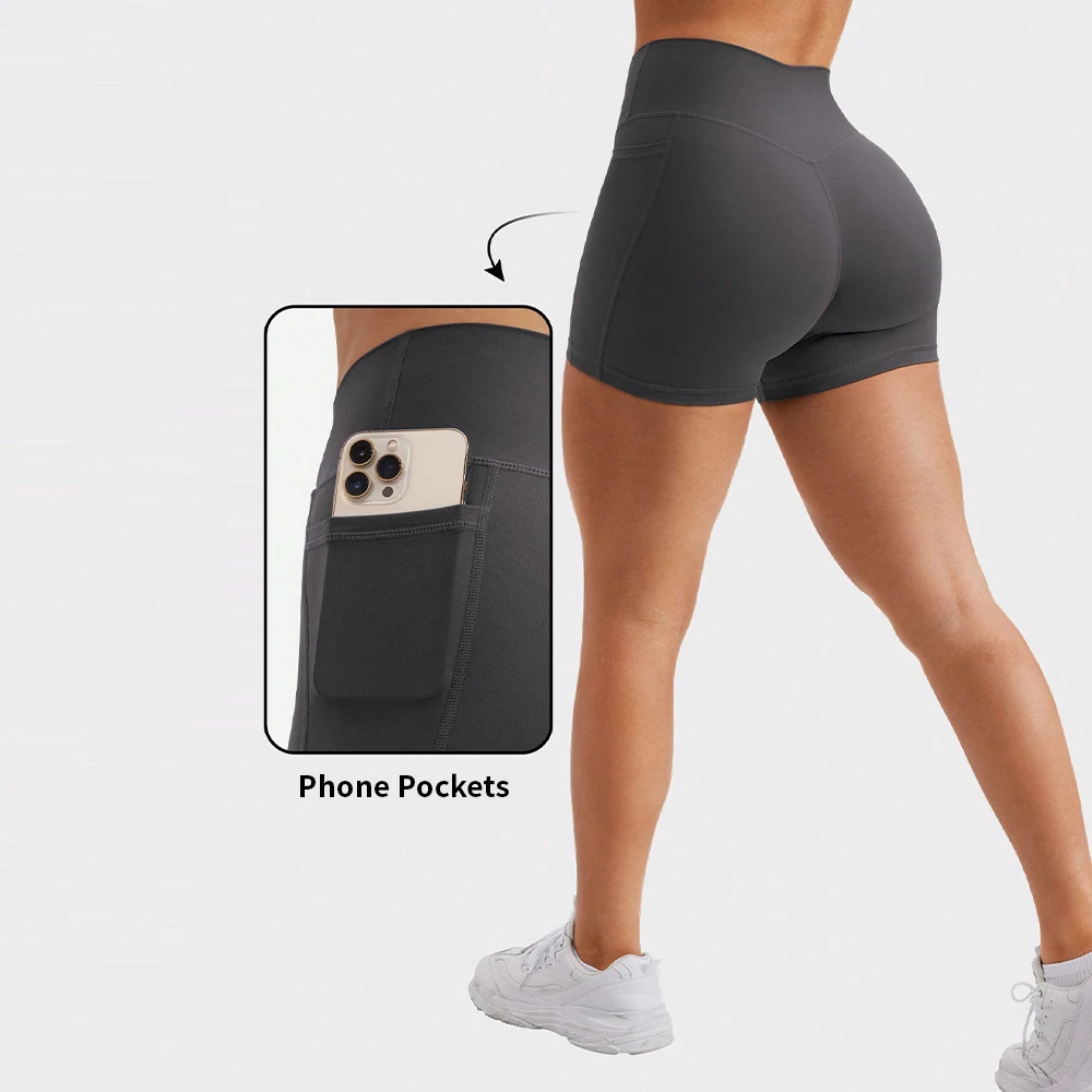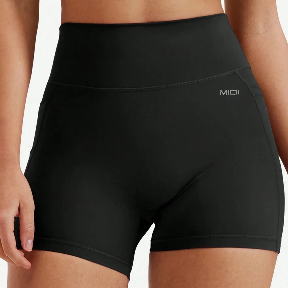 Custom Women's Solid Quick Dry High Waist Hip Lifting Yoga Shorts with Pockets Breathable Four-Way Stretch for Gym Fitness